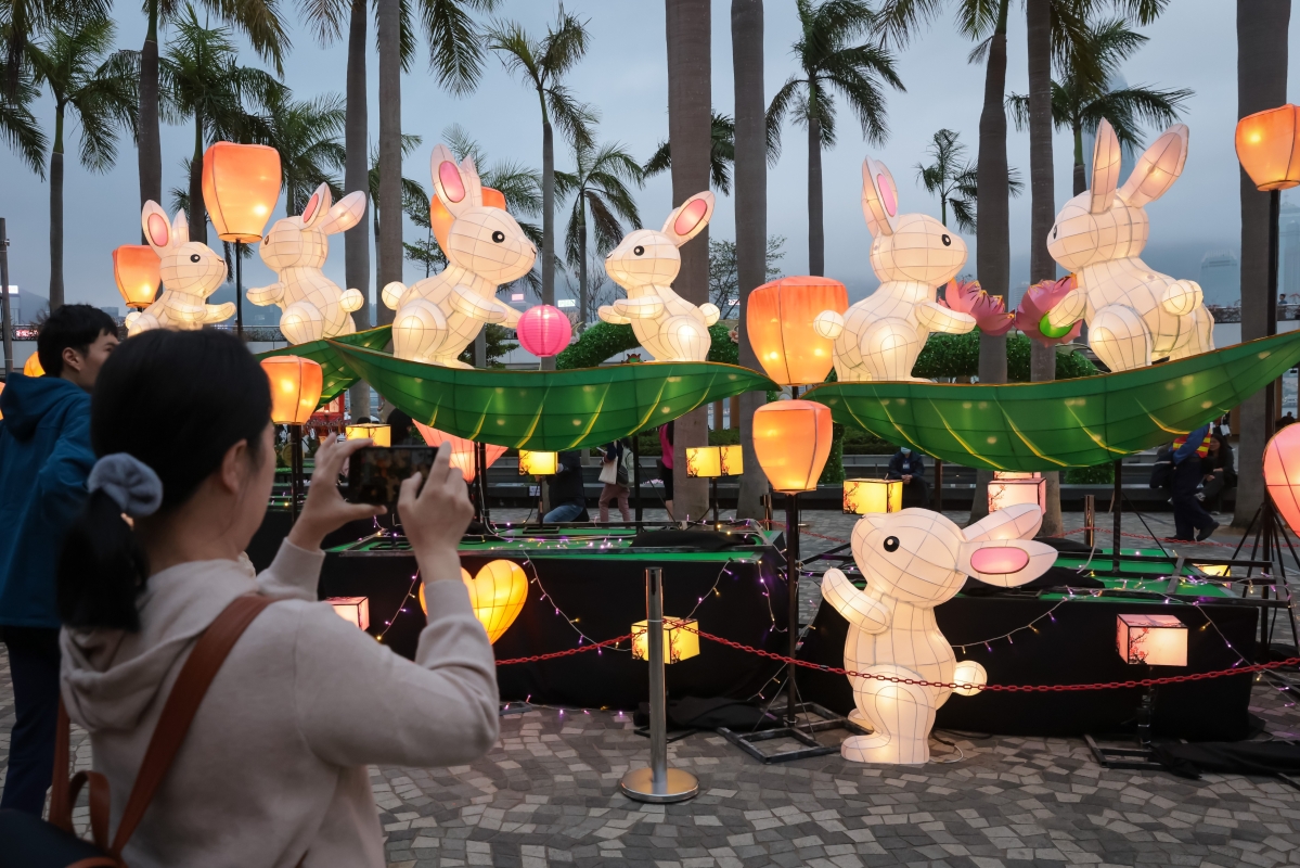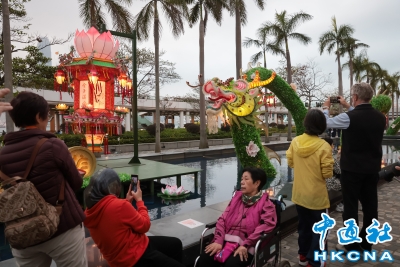 香港新聞網2月23日電(記者  謝光磊 )  2月23日,元宵節臨近,不少市民在香港文化中心露天廣場逛彩燈猜燈謎。香港康文署於香港文化中心露天廣場、香港單車館公園、天水圍公園及銀座廣場舉辦“甲辰年元宵彩燈會”,展示不同主題的彩燈。