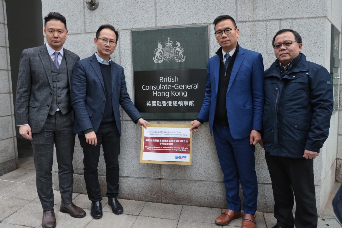 香港民建聯強烈譴責英國妄議抹黑基本法第23條立法