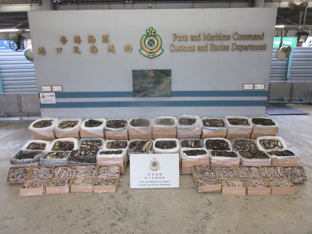 圖源:政府新聞處。 海關人員昨日透過風險評估,揀選及查驗一個從緬甸抵港的四十呎海運貨櫃,並在貨櫃內發現該批懷疑受《保護瀕危動植物物種條例》(《條例》)(第586章)管制的乾海參及乾魚鰓。 案件已轉交漁農自然護理署跟進。 根據條例,任何人在未取得所需許可證的情況下進口、出口或管有瀕危物種,即屬違法,一經定罪,最高可被判罰款一千萬元及監禁十年。市民可參閱網頁,以了解各附錄物種的許可證要求。如有查詢,可以電郵hk_cites@afcd.gov.hk或致電1823與漁護署聯絡。 市民可致電海關二十四小時熱線2545 6182,或透過舉報罪案專用電郵帳戶(crimereport@customs.gov.hk),或網上表格(eform.cefs.gov.hk/form/ced002)舉報懷疑走私活動。(完) 【編輯:譚暢】