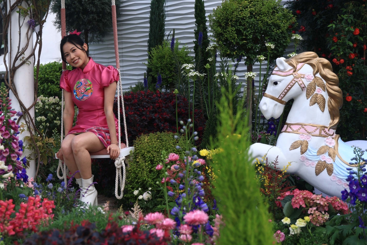 2023年度香港小姐冠軍莊子璇出席香港花卉展覽造像攝影活動