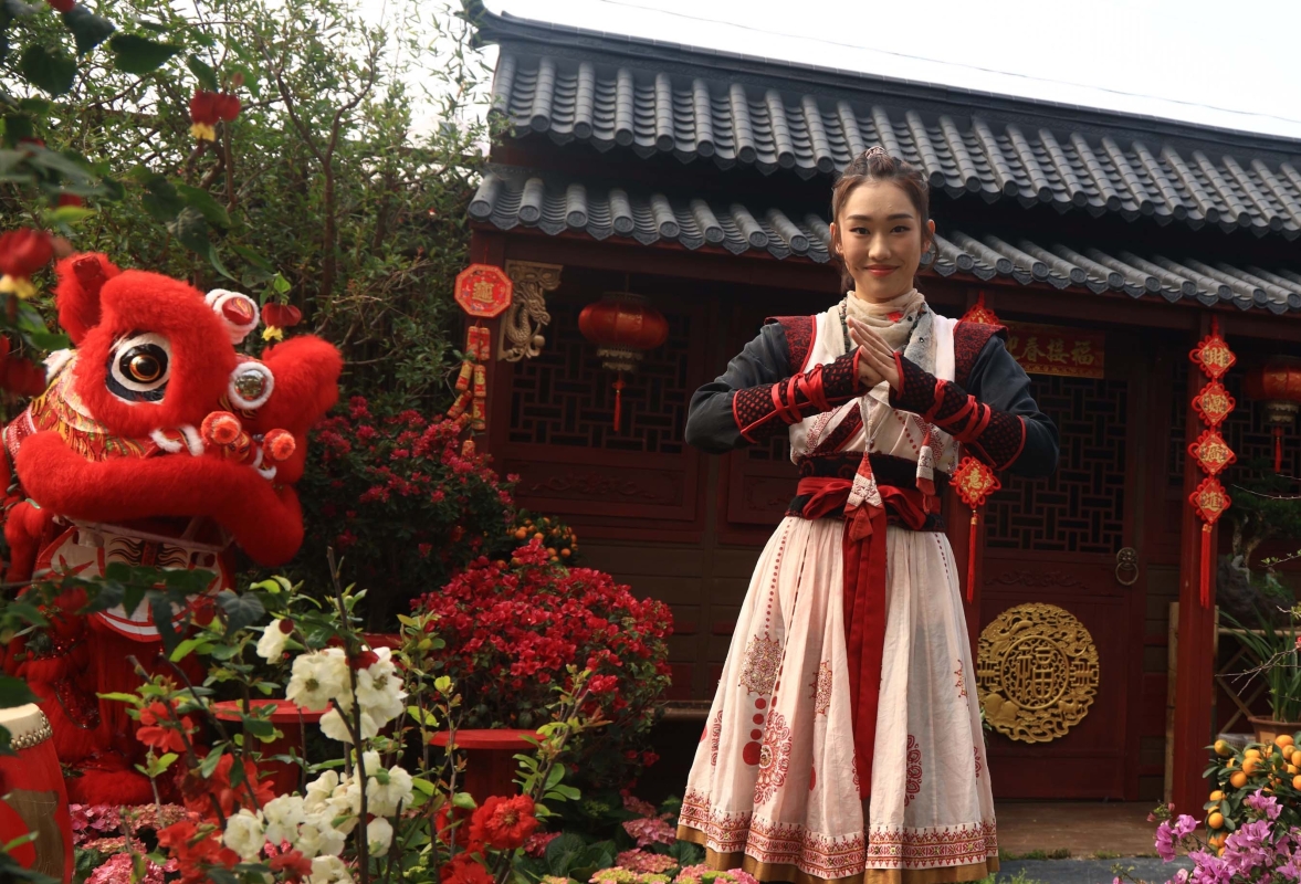 藝人在花卉展上拍攝造型 【編輯:許其皓】