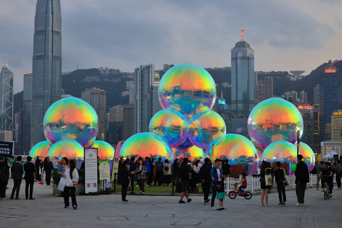 巨型肥皂泡泡造型裝置融入維港海景,配合特別燈光和聲效,視覺效果隨日照時間改變 【編輯:曹文毓】