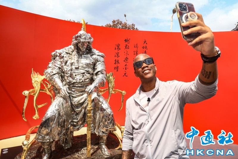 香港中通社圖片 當天,中環海傍陽光正烈,氣溫達27度,仍有不少市民專程前來一睹金庸筆下的人物風采。展覽也迎來一個特別的面孔——馬布里。 熱愛中華文化的馬布里,一到展區便開啟“打卡”模式,先在門口與成吉思汗雕塑合照,大讚作品“很酷”。 走進展覽,策展人方圓明向馬布里介紹金庸及其作品下的人物,馬布里頻頻點頭,不時發問,又“比劃”出“降龍十八掌”,與展區特效場景互動。 馬布里參觀後接受媒體採訪。他說,透過展覽了解到金庸的傳奇一生、他所創作的故事及人物,十分了不起。他最喜歡的角色是活潑淘氣的“老頑童”周伯通,懂得享受生活,又能給身邊人帶來快樂。 在中國籃壇效力多年的馬布里,去年11月透過高端人才通行證計劃來港發展。他形容,香港是他“第三個家”,“喜歡這裡的美食,也喜歡這裡的文化,這是一個24小時運作、文化多元共融的城市。”馬布里直言,未來完成籃球事業後,或會考慮在此生活。 馬布里曾效力紐約人、波士頓塞爾特人等球隊,其後轉戰中國男子籃球職業聯賽,曾任北京紫禁勇士籃球俱樂部主教練。他說過,自己的家鄉是紐約和北京。(完) 【編輯:馬華】