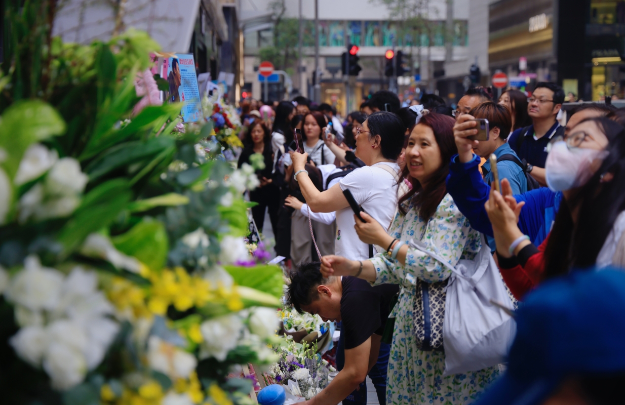 張國榮逝世21周年 香港文華東方酒店外大批粉絲獻花悼念