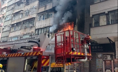 香港新聞網4月10日電 香港油麻地佐敦道一大廈10日上午七時五十三分發生火警,並於上午八時零四分升為三級,火勢於上午八時五十四分受到包圍。據瞭解,現場至少5死19傷。 消防人員正動用兩條喉及兩隊煙帽隊灌救。