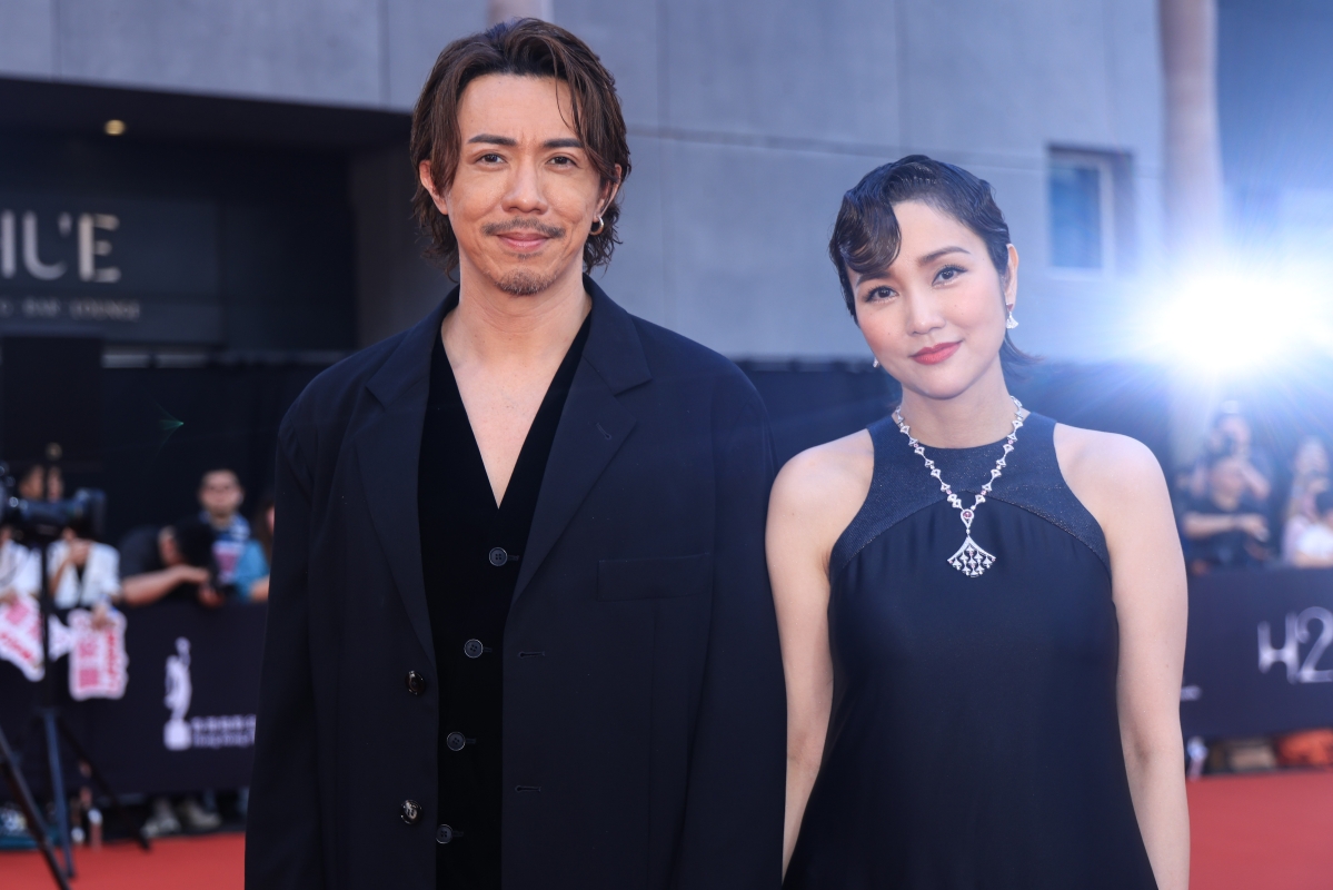 演員張繼聰(左)、歌手謝安琪(右)亮相紅地毯
