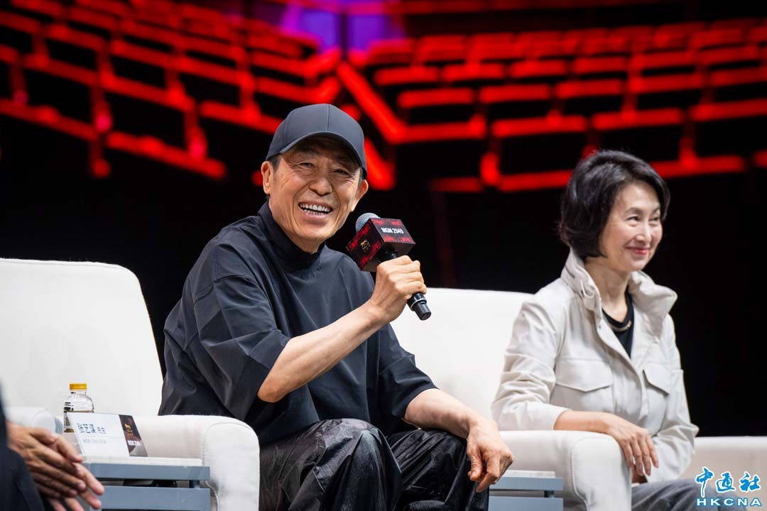 4月8日,張藝謀在《MGM 2049》之專題交流座談會暨全球招募啓動儀式上。澳門美高梅與中國導演張藝謀聯手,將於美高梅劇院打造全球矚目的《MGM2049》駐場秀,以獻禮新中國成立75周年以及澳門回歸祖國25周年。 香港中通社圖片