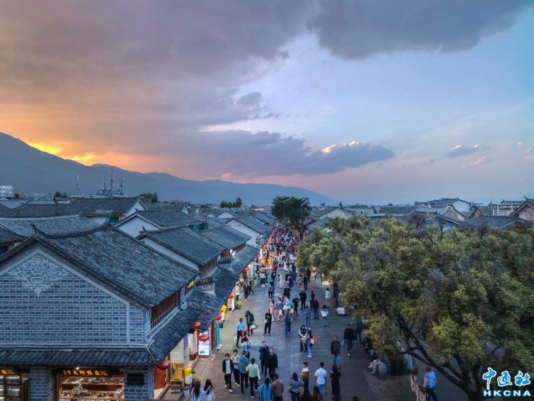 雲南大理古城是8-12世紀南詔、大理國等中國地方政權王朝的都城。當時的大理是亞洲經濟、文化、宗教交流的中心之一,堪稱“東南亞第一大古都”。圖為如今文旅發達、夜生活璀璨的大理古城。(香港中通社記者 吳一帆攝)