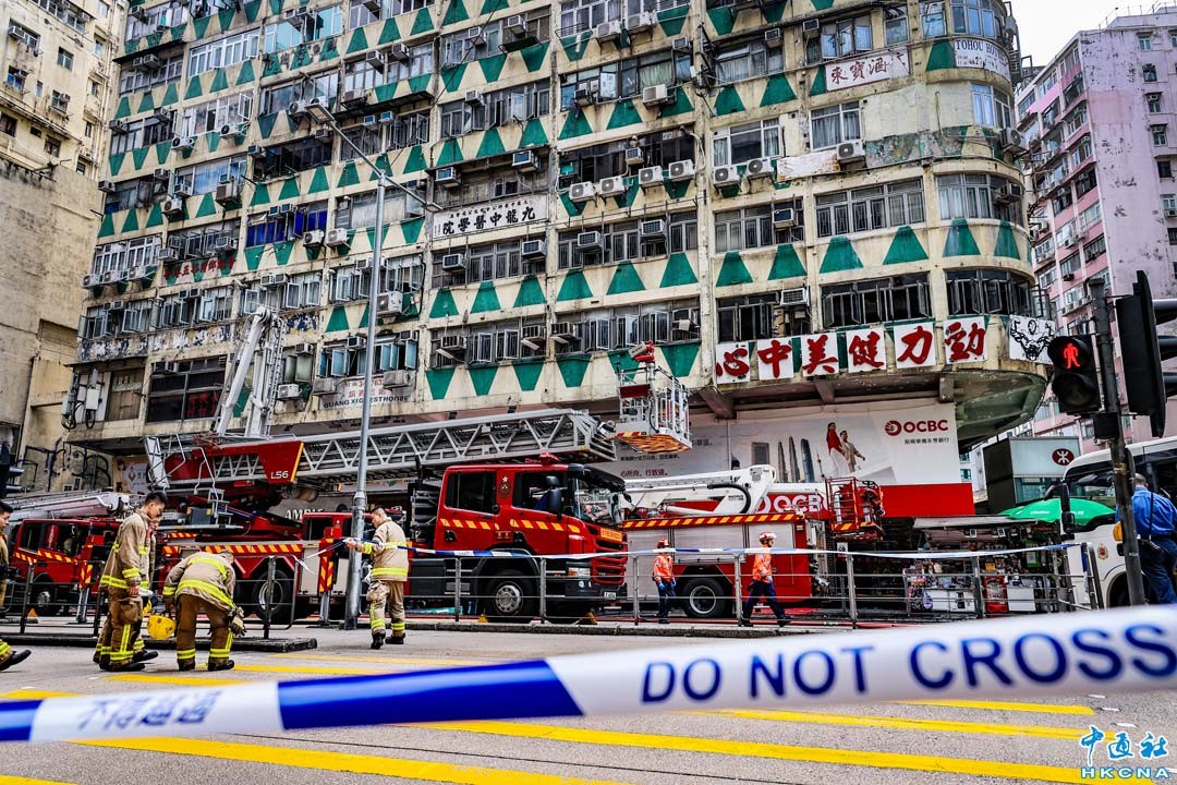 4月10日早上,香港佐敦道華豐大廈發生3級火,初步造成5人死亡,多人受傷送院。(香港中通社記者 許其皓攝)