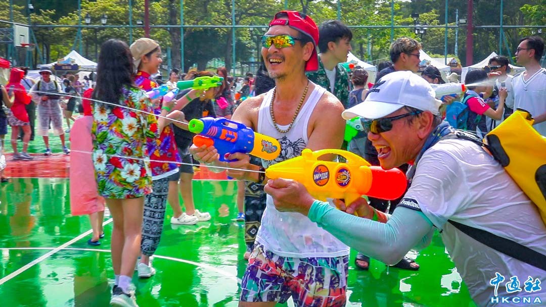 4月13日是泰國新年“宋干節”,素有“小泰國”之稱的香港九龍城區也迎來了為期三天的“泰繽紛·龍城美食潑水嘉年華”活動。萬眾期待的潑水節在賈炳達道公園舉行。現場人頭攢動,熱鬧非凡。伴著律感十足的音樂,大家紛紛拿出水槍等潑水玩具,向周圍的人送上祝福,一齊享受著這場盛大的狂歡。香港中通社圖片