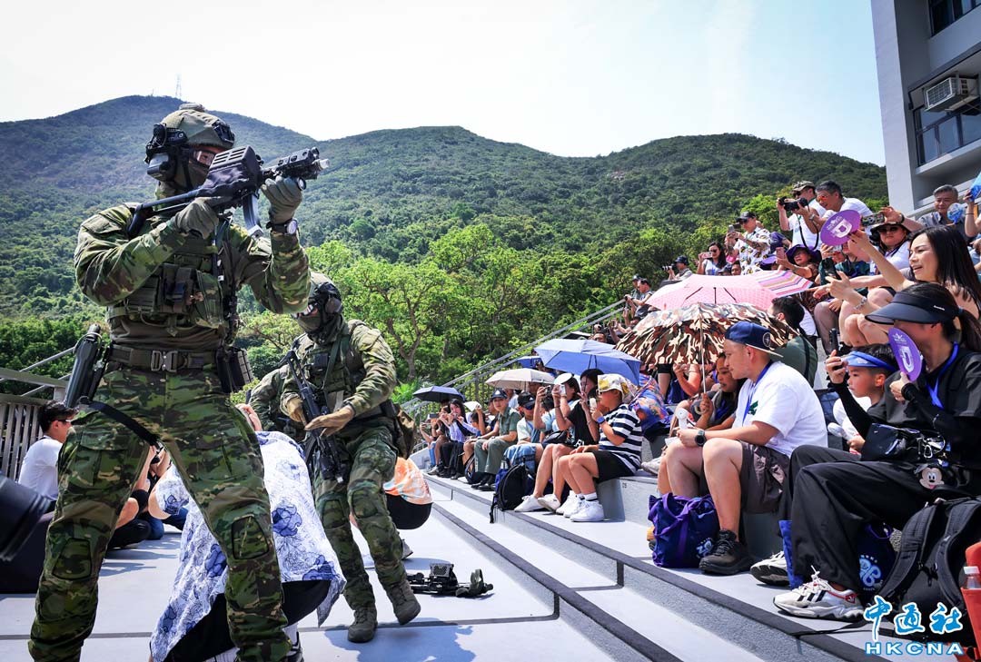 4月13日,香港警務處在香港警察學院舉行“全民國家安全教育日暨香港警隊180周年警察學院開放日”活動,以大匯演揭開序幕,除了音樂表演外,還有駕駛表演、警犬服從表演及由特別任務連(飛虎隊)、反恐特勤隊及無人機隊參與的反恐演練。(香港中通社記者 曹文毓攝)