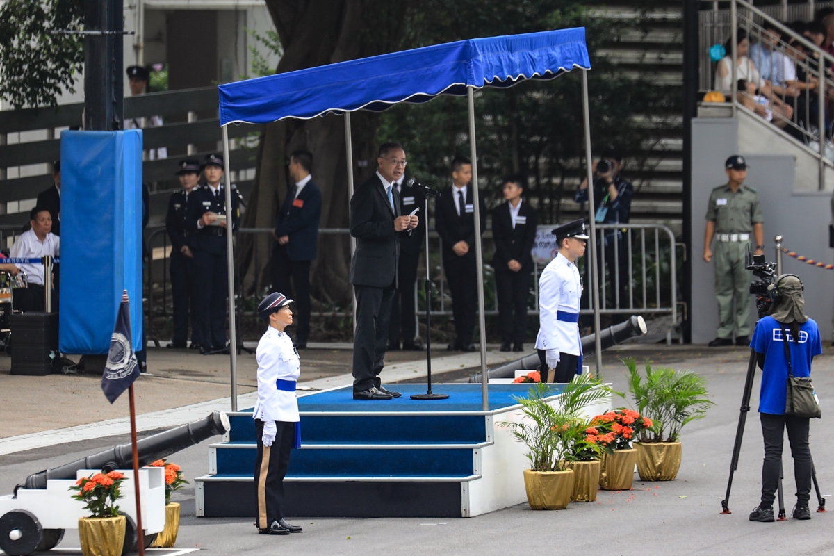 香港新聞網4月27日電(記者許其皓)4月27日,香港警察學院舉行結業會操,今年共有27名見習督察和172名學警畢業。香港金融管理局總裁余偉文在典禮中擔任檢閱官,并頒獎給優秀督察和警員。余偉文在典禮致辭中表示,金管局和警察的使命都是確保社會安全、穩定和繁榮,警隊的工作是撲滅罪行、維持社會秩序,金管局的工作是確保金融體系,包括貨幣、銀行和金融市場穩定。強調只有在社會安全穩定的基礎下,才能保障金融安全。