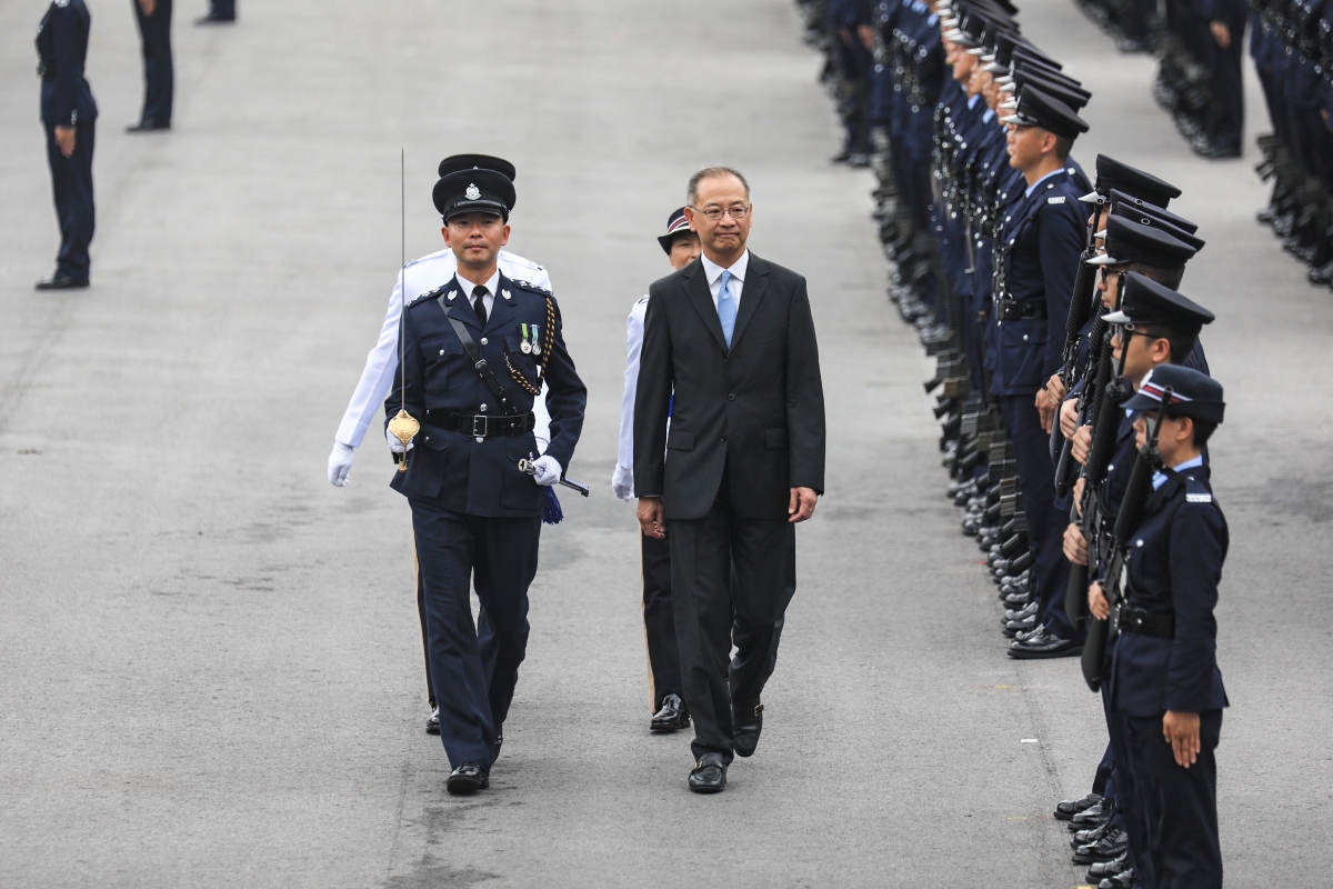 香港金融管理局總裁余偉文在典禮中擔任檢閱官 【編輯:許其皓】