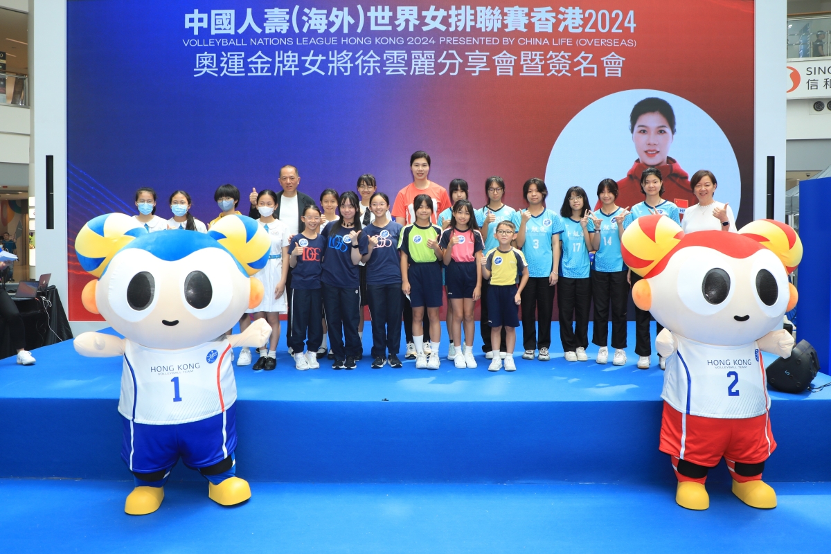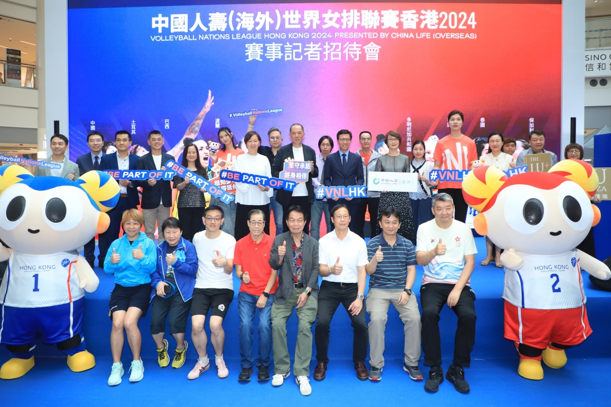 文化體育及旅遊局體育專員黃德森、中國香港排球總會會長吳守基、中國人壽(海外)世界女排聯賽香港2024組織委員會執行主席石徐惠芬女士、中國人壽(海外)副總裁忽群女士、奧運金牌女將徐雲麗出席