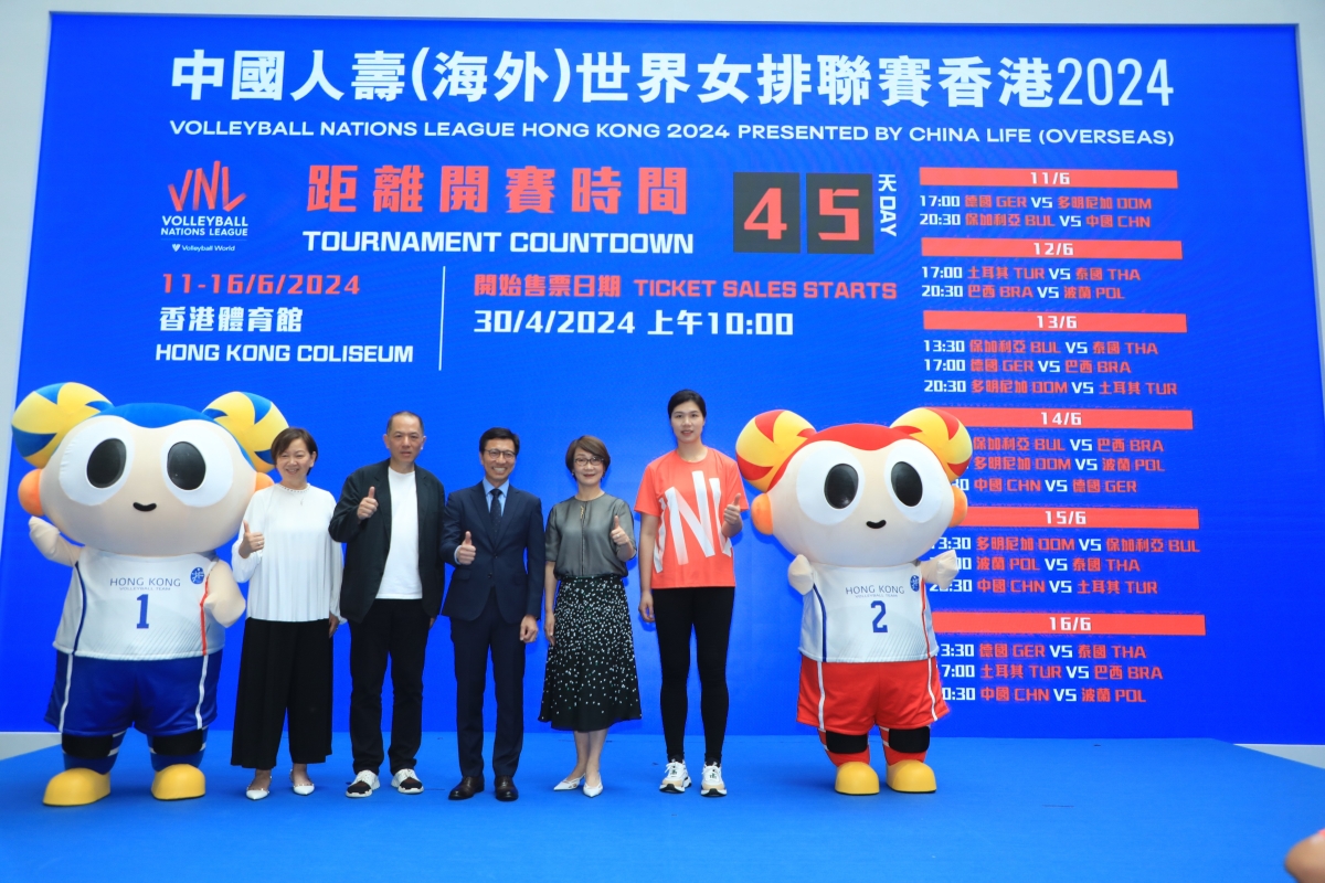 香港新聞網4月27日電(記者許其皓) 巴黎奧運會前,排球界最盛大的國際賽事再度來臨香港。由中國香港排球總會主辦之“中國人壽(海外)世界女排聯賽香港2024”,將於6月11至16日假香港體育館舉行。世界女排聯賽不僅是在國際享譽盛名的排球比賽,本次賽事更是最後機會讓包括中國隊在內的各隊群雄爭取巴黎奧運會入場券。6天的賽程將由中國、土耳其、巴西、波蘭、多明尼加共和國、德國、泰國、及保加利亞組成的8隊強勢陣容帶來16場精彩賽事。 4月27日,“世界女排聯賽香港2024”主辦機構在香港澳海城舉行記者招待會,公佈賽事資訊及售票詳情,並專程邀請奧運金牌女將徐雲麗分享會暨簽名會及人氣影星王丹妮亮相,親身支持賽事。文化體育及旅遊局體育專員黃德森、中國香港排球總會會長吳守基、中國人壽(海外)世界女排聯賽香港2024組織委員會執行主席石徐惠芬女士、中國人壽(海外)副總裁 忽群女士、奧運金牌女將徐雲麗、影星王丹妮出席。