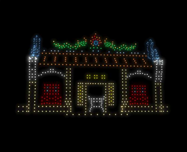 旅發局無人機表演模擬圖片。 由無人機組成的立體包山高約60米,比傳統大包山大4倍,壯觀搶眼,包山頂部更有一個直徑達30米的巨大平安包。無人機亦會展示到廟宇祈福的節日傳統、靈活舞動的醒獅等,寓意平安順利吉祥。