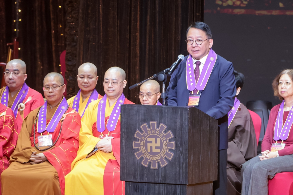 陳國基致辭表示,適逢中華人民共和國成立七十五周年,吉祥法會除了讓市民積功德外,亦向祖國和香港送上誠摯祝福,別具意義。