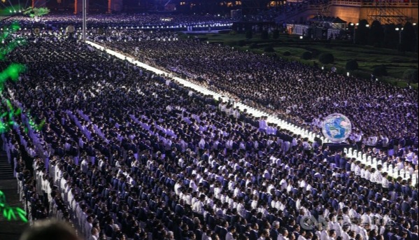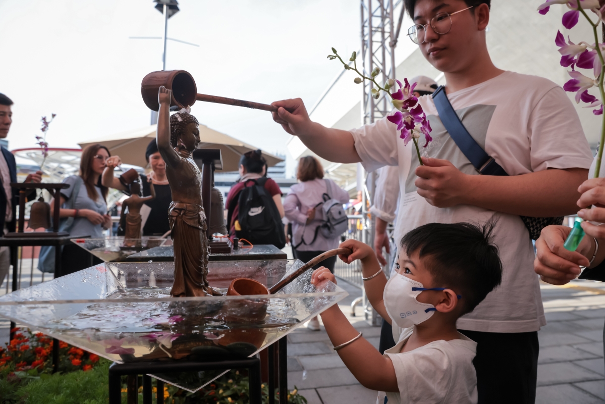 大批善信在紅館戶外廣場參與祈福、浴佛儀式