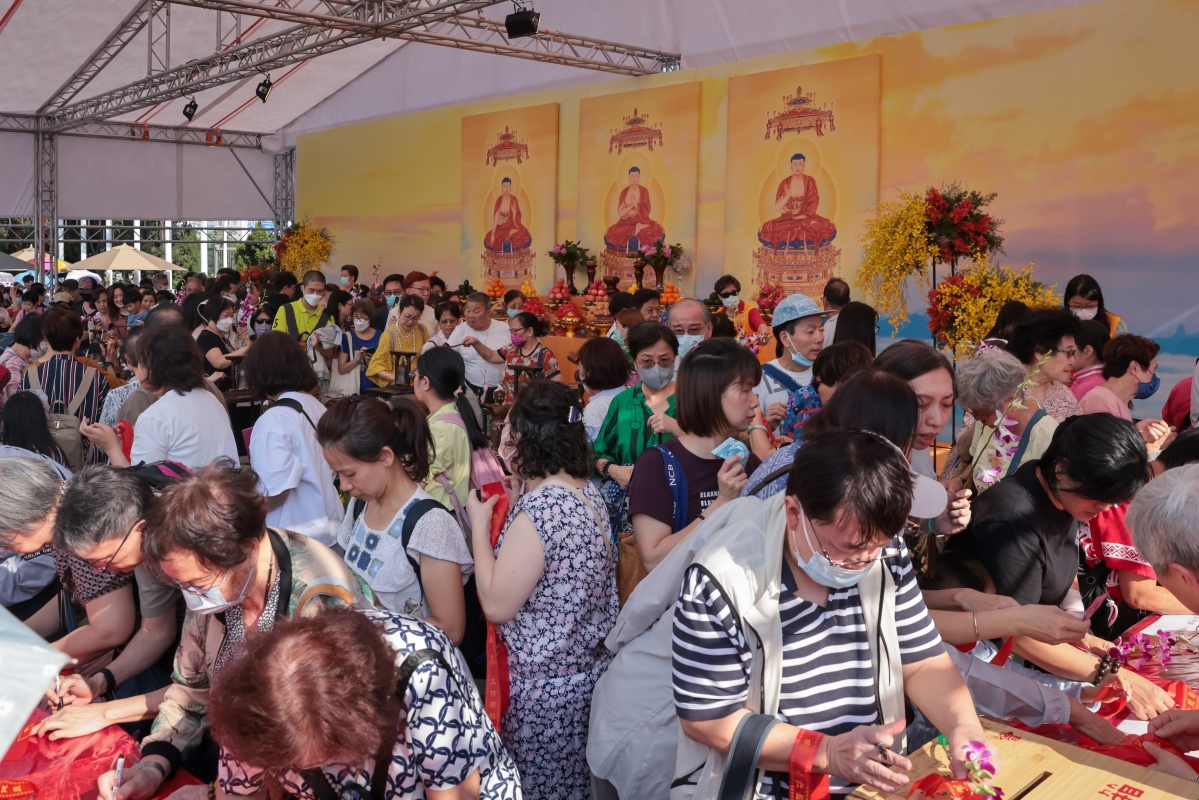 紅館戶外廣場大排長龍,大批善信參與祈福、浴佛儀式 【編輯:謝光磊】