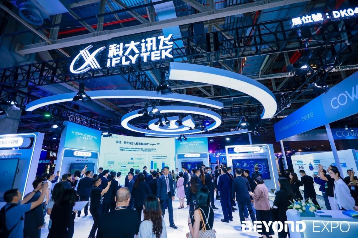 共話未來前沿科技,激發科技創新活力 本次活動展區中,科大訊飛攜星火大模型(iFLYTEK SPARK)、訊飛同傳(iFLYTRANS)、訊飛聽見智慧屏(iFLYHUB)、及多款C端硬體產品參展,展現多領域人工智慧應用的探索和一系列大模型落地創新案例,為觀眾展現“AI+”的廣闊想像空間。在BEYOND活動中,訊飛同傳為會議提供全程所有場次的英/中同傳服務。