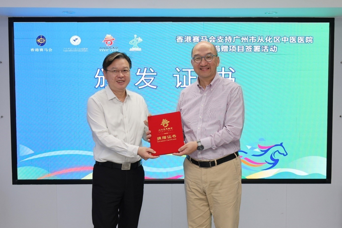 圖片由香港賽馬會提供 隨後,廣州香港馬會賽馬訓練有限公司與從化區衛健局代表簽署了捐贈協定。活動結束後,與會嘉賓參觀了從化區中醫醫院的新院區,聽取院領導介紹有關建設情況及未來規劃。 本次捐贈項目是《2023-2024年度香港賽馬會支持從化公益項目計劃》中的一部分。香港賽馬會將向從化區中醫醫院定向捐贈1000萬元人民幣,用於購買新院所需要的醫用傢俱。這次捐贈將覆蓋新院所需醫用傢俱的70%以上。專案不僅提升了從化區醫療服務水準,也助力從化區振興和發展中醫藥事業和產業。據悉,此項目屬於從化區十四五規劃中的重點醫療工程,是從化區落實廣東省委倡議的“百千萬工程”中的一環,亦是從化區建設康養、醫療旅遊產業的舉措之一。中醫院未來將打造成為集醫療、教學、康養於一體的大型醫療綜合體,結合將來在從化馬場舉辦的賽馬賽事及各項娛樂活動,將有助於從化區打造高端旅遊產業,促進經濟高品質發展。 香港賽馬會作為從化區的堅實夥伴,長期支援從化區的社會民生發展。在2021-2022年度,香港賽馬會向從化區捐贈了14輛救護車(包括7輛負壓救護車)及相關醫療設備,並捐資四百多萬元人民幣用於購置150台自動體外除顫儀,用以改善公共衛生和基本醫療情況,提升急救現場緊急救治的基礎配置,讓更多的從化區市民的生命健康安全得到保障。 2022-2023年度,香港賽馬會向從化區捐贈逾人民幣1500萬元,通過五個公益專案支持當地全面發展。鑒於年度慈善計畫自實施以來取得了不俗的成果以及雙方更深入的合作,香港賽馬會已將2023-2024年度慈善計畫的年度上限提升至人民幣2000萬元,總共涵蓋14個項目,繼續為從化區的各項民生社區建設添磚添瓦。(完) 【編輯:徐嘉儀】