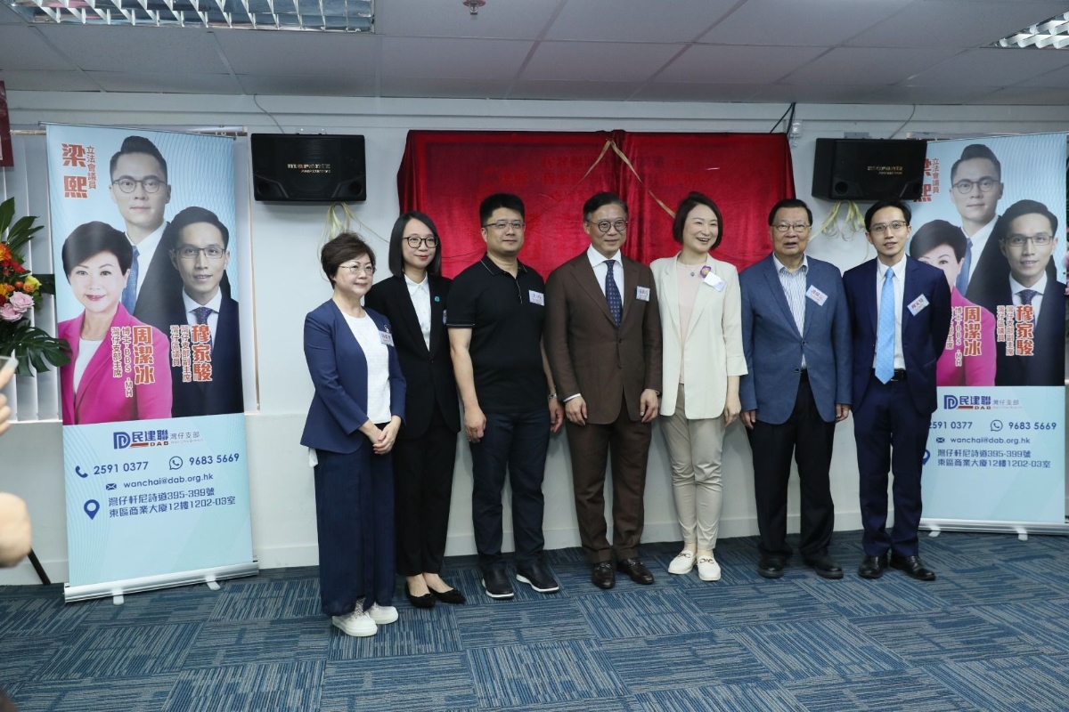 活動吸引多名政界人士現身支持,包括律政司副司長張國鈞、中聯辦港島工作部副部長王卉、民建聯會務顧問譚耀宗、立法會議員暨行政會議成員李慧琼及灣仔支部主席周潔冰等人到場任嘉賓,場面十分熱鬧。 張國鈞致辭時表示,灣仔區對他而言特別有感情,指自己擔任律師初期就在該區從事地區服務,直言“起點就喺灣仔呢度”。他又指灣仔區有很多本港其他區沒有的特點,例如當區私樓臨立,特別多單獨的樓宇,故有很多的樓宇管理問題 ,笑言“如果你喺灣仔處理過(樓宇管理)問題,基本上你都可以處理到其他區問題”,祝願灣仔支部及辦事處“生意興隆”。