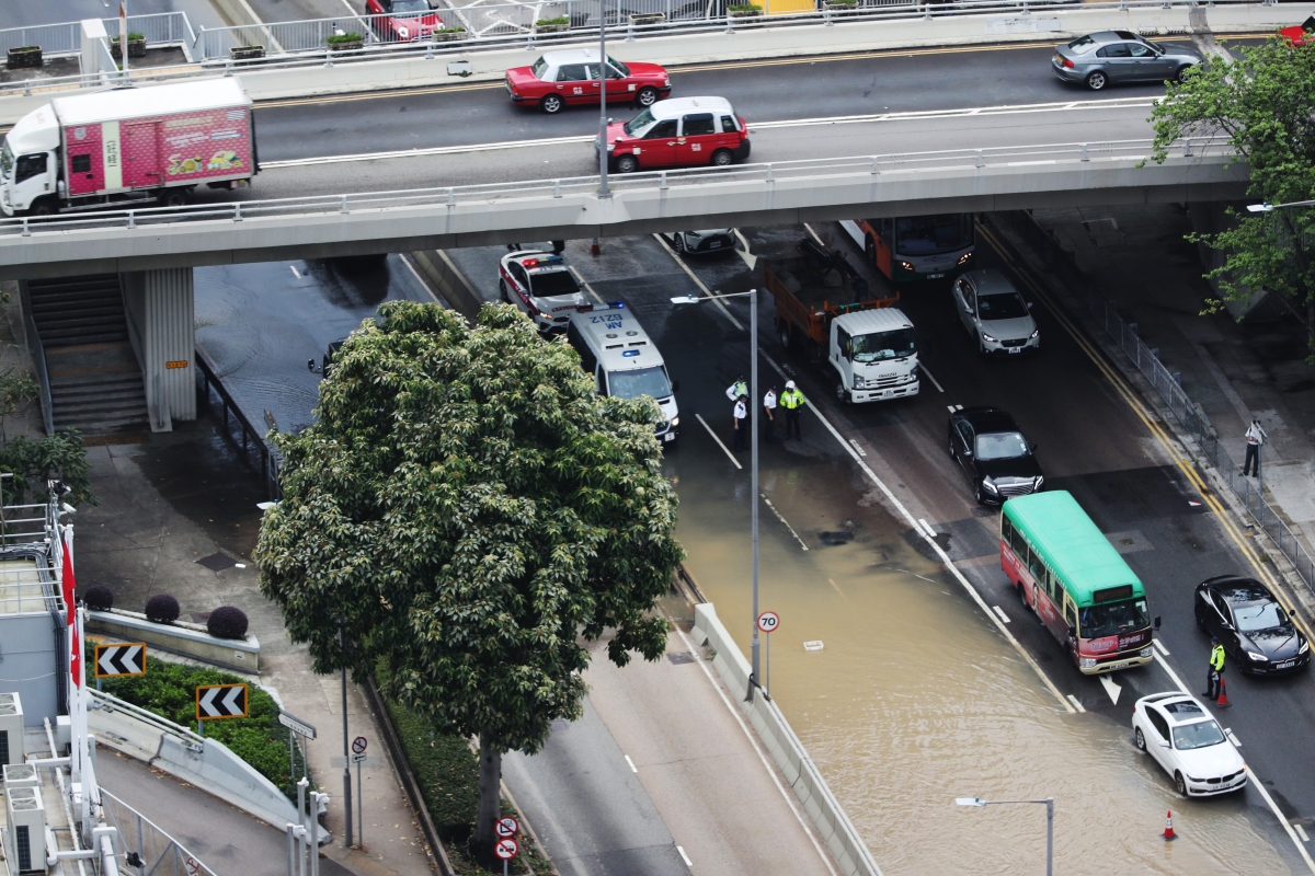 香港黃竹坑道馬路爆水管