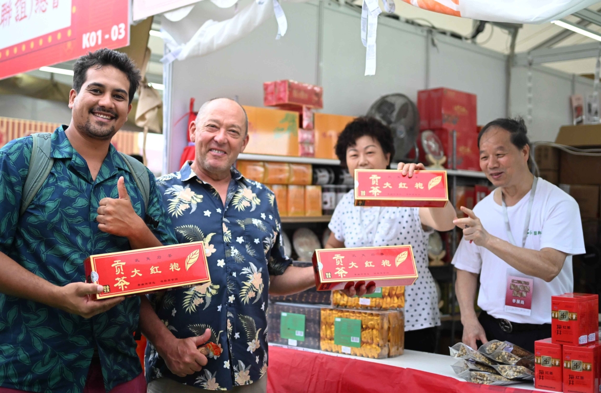 開幕當天有外國旅客興致勃勃在茶藝軒攤位選購中國茶