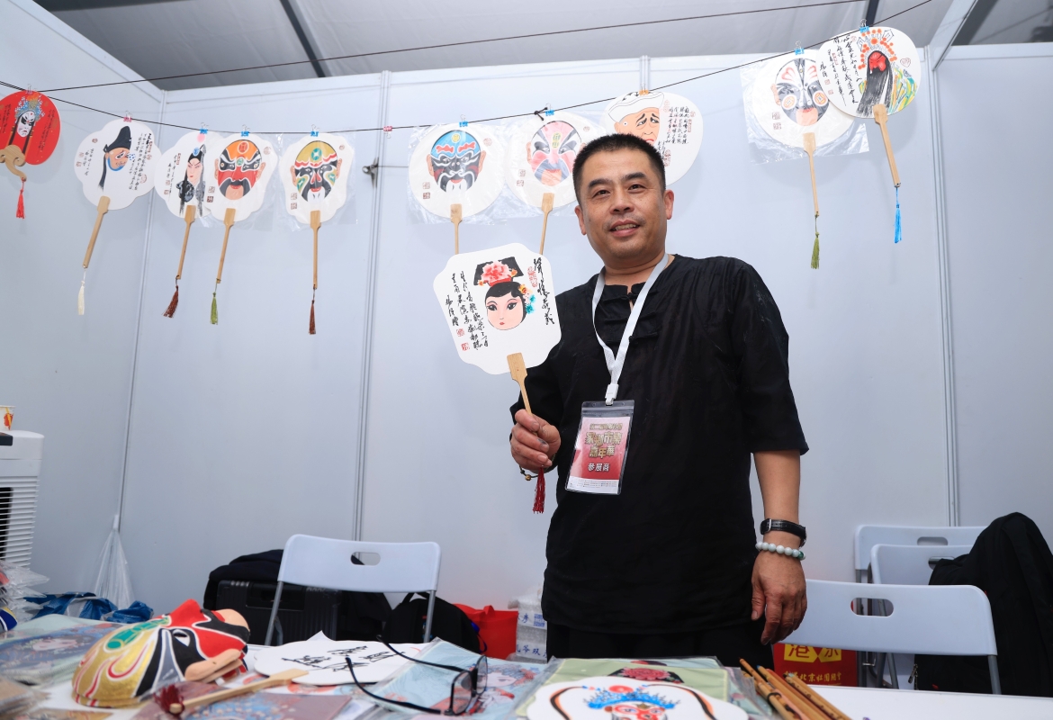 翁(偶虹)氏京劇臉譜第三代代表性傳承人楊強現場展示繪畫技藝(曹文毓攝)