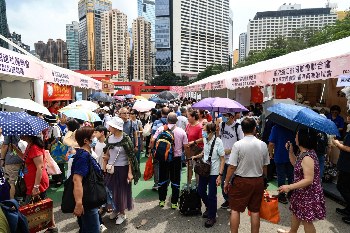 香港新聞網6月2日電(記者 許其皓)6月2日周日,香港維園家鄉市集嘉年華人山人海,大批公眾入場參觀消費。第二屆同鄉社團家鄉市集嘉年華6月1日起一連五日在維多利亞公園舉行,由香港28個省級同鄉社團合辦,場內有224個市集攤位,包括特產展銷、文藝表演、非遺展示、美食休閒四大板塊。