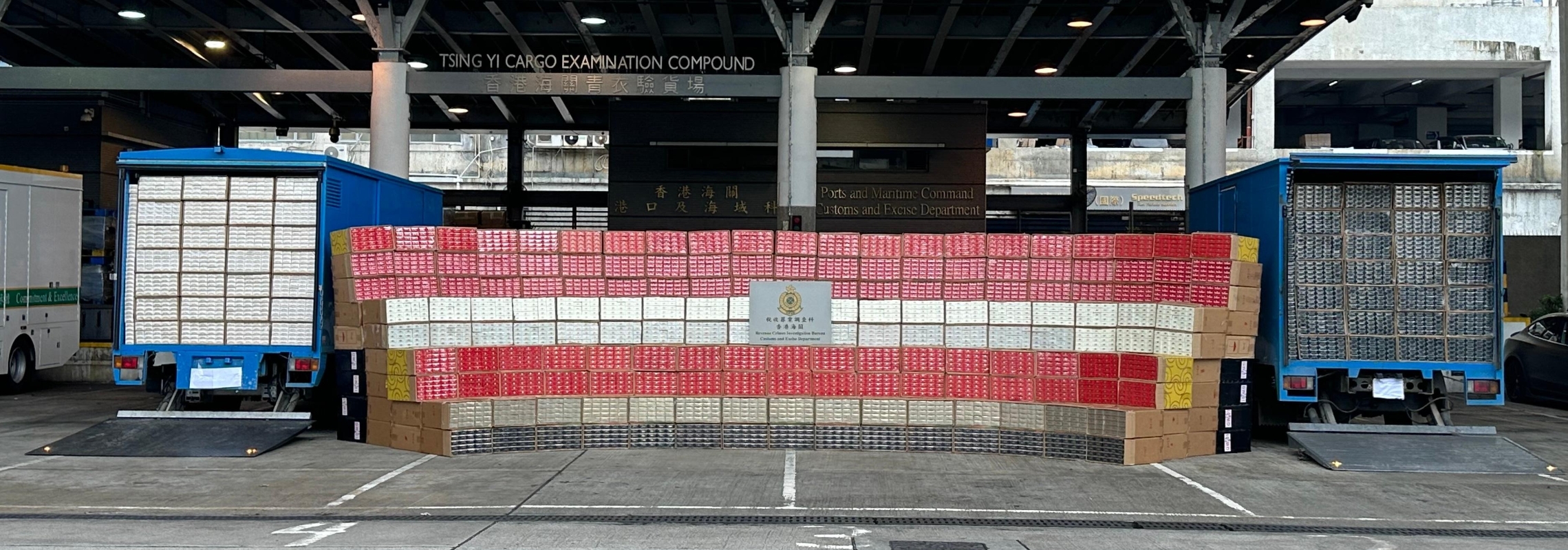 圖源:政府新聞處。 其後,海關人員押解該男子到停車場搜查,在兩輛貨車上檢獲約110萬支私煙。陳嘉豪指,相信被捕男子是集團骨幹成員,負責運送私煙和租用工廈單位。跟進調查後,海關人員又在元朗一鐵皮貨場內搜出約1020萬支私煙。 行動中,海關共檢獲13個牌子的私煙,料私煙集團透過不同海路和陸路的走私渠道,將私煙運至香港,再以“百鳥歸巢”的方式,集中儲存於鐵皮貨場內。其後,集團將私煙重新包裝,改頭換面後推出市場銷售。私煙經重新包裝後,集團將之分批儲存在不同地方,企圖減低被查獲所造成的損失。 海關表示,會繼續調查該批私煙的來源和去向,不排除有更多人被捕。 (完) 【編輯:譚暢】