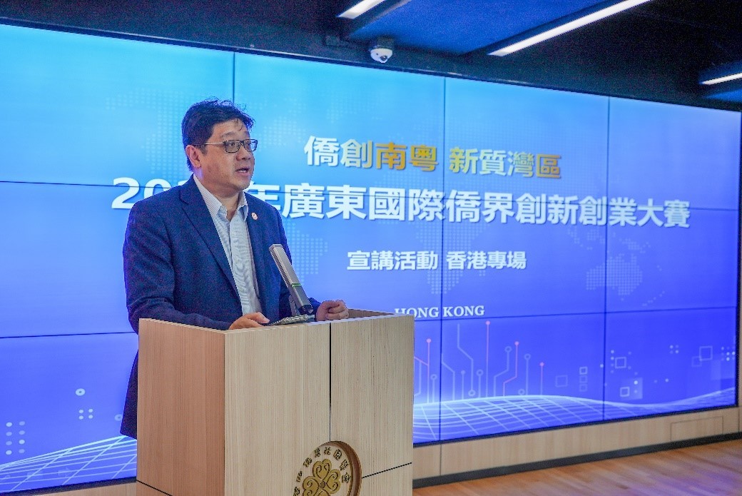 全國政協委員、中國僑聯常委、香港僑界社團聯會會長黃楚基致辭。 黃楚基會長表示,廣東國際僑界創新創業大賽作為廣東首個省級僑界創新創業賽事,緊扣新質生產力主題,點燃僑青創業激情,凝聚僑青創新智慧,實現創新創業與時代發展“雙向奔赴”。他相信大賽的舉辦,能夠以“僑”為橋,匯集“僑”智,凝聚“僑”益,讓僑界青年為粵港澳大灣區發展貢獻“僑動力”。希望海內外僑青可以積極報名參賽,在比賽中碰撞想法,激發創意,發揮“僑”的獨特優勢,利用個人專長,發揮合作精神為團隊爭光添彩,獲得佳績。