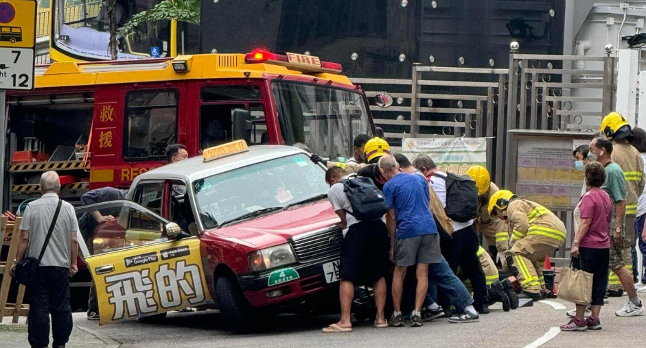 當日早上約8時30分,涉事的士駛至香港仔水塘道賽馬會普通科門診診所對過,撞倒一名過馬路女子,該女子捲入車底被困。消防到場前,多名市民合力抬車救人。