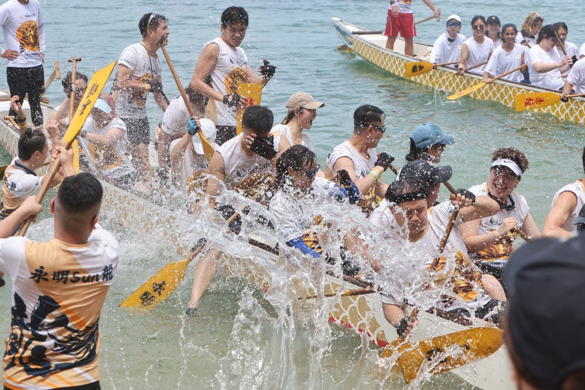 香港新聞網6月10日電(記者 謝光磊 ) 6月10日是端午節,香港赤柱舉辦的“國際龍舟錦標賽” ,今年參賽人數最多,約有190個隊伍、約3800人參加,合共有54場初賽、複賽及決賽賽事。設有公開組、混合組、女子組等組別,賽事組別亦由5項增至6項,新增了大學邀請盃。每年端午節,赤柱正灘都會從早上開始上演龍舟賽事,由於賽道全長僅270米,路程較短,賽況相對更加緊湊和激烈。