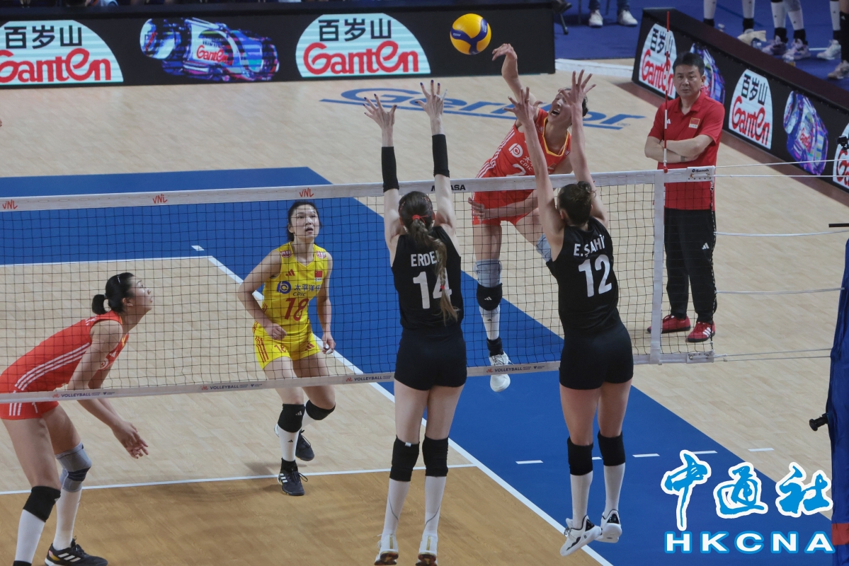 香港新聞網6月15日電(記者 譚暢)15日晚,香港紅館一片中國紅,世界女排聯賽香港站踏入倒數第二日,已經拿下巴黎奧運入場券的中國女排,以3:2逆轉贏得世界排名第一的土耳其,在香港主場三連勝。