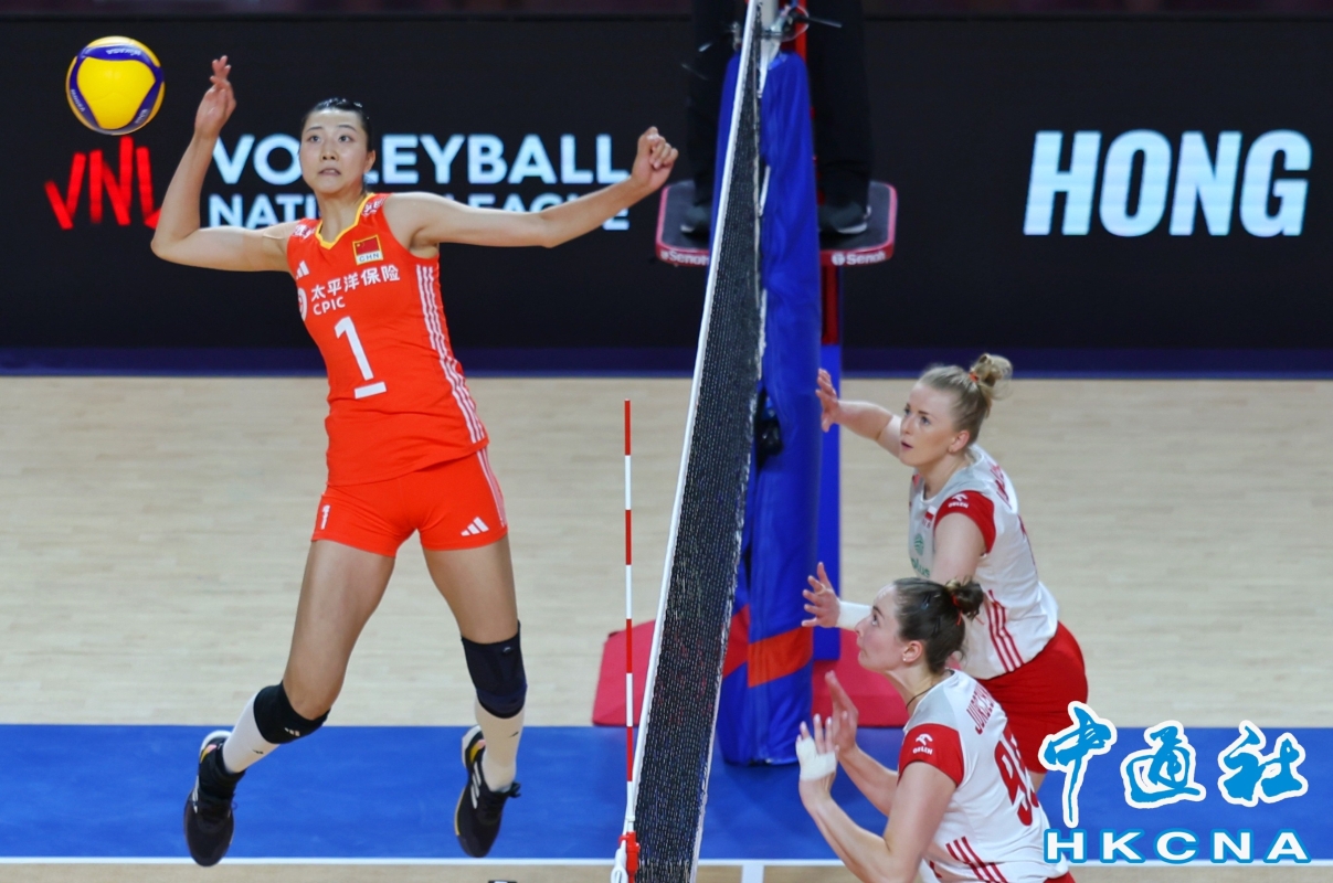 香港新聞網6月16日電 (記者 陳卓儀)中國女排16日晚間迎來世界女排聯賽香港站壓軸戰,迎戰波蘭隊,最終以3:0輕取對手,在香港四場全勝。 中國隊首發陣容為主攻李盈瑩、吳夢潔。副攻袁心玥、王媛媛。接應龔翔宇。二傳:刁琳宇。自由人:王夢潔。 此前,女排姑娘在香港站保持不敗,並在15日晚間的比賽中,0:2落後下上演大逆轉扳倒世界第一的土耳其隊。壓軸戰紅館一片“中國紅”,現場不少粉絲手拿應援橫幅。 首局波蘭率先得分,中國隊進攻扳平。屢屢發球失誤後,2:5落後的中國隊請求暫停。調整狀態後,中國隊吳孟潔一記暴力扣球振奮全場。波蘭攔網、邊界救球拼勁很足,首局雙方主動失誤較多,局中追至14平後,中國隊手感漸熱,進攻果斷。25:23,中國隊花了接近半小時,成功拿下第一局。