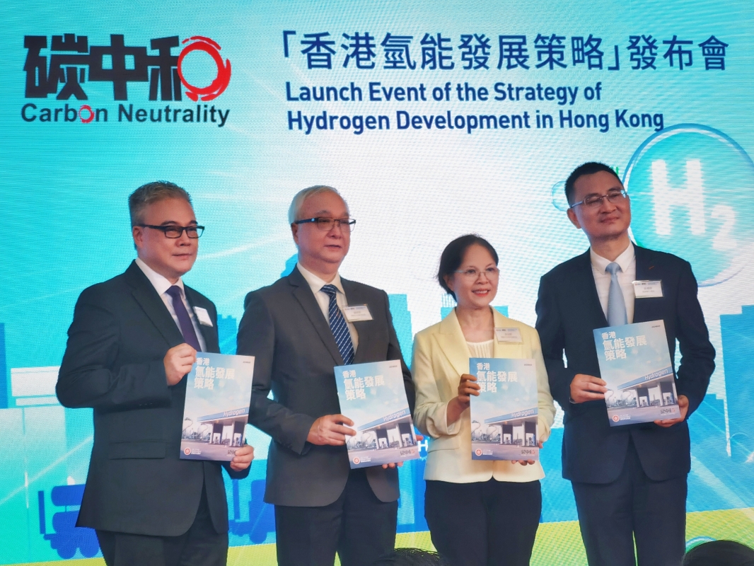圖為《香港氫能發展策略》發布會現場,左二為謝展寰。 謝展寰認為,香港地方少,難以大規模製造氫,但內地有很多氫產品,香港“背靠祖國”,可作為窗口,成為向國際示範、推廣的基地。氫能產業發展除了可達至碳中和,有關產品亦可在香港融資,增加商機。 至於是否可家居應用氫能,他表示,香港現時使用的煤氣大部分是天然氣製造,並非煤造,當中有一半是氫氣。香港的優勢在於現時有管道貫通,可供應氫氣。若日後慢慢在家居應用,比較大的可能是抽出氫氣注入燃料電池發電,令家居可以氫能發電,但市場要有適合產品。 特區政府日前發表《香港氫能發展策略》,2025年上半年將向立法會提交修例建議,為氫氣的生產、儲存、運送、使用、供應等提供法律基礎。 (完) 【編輯:譚暢】