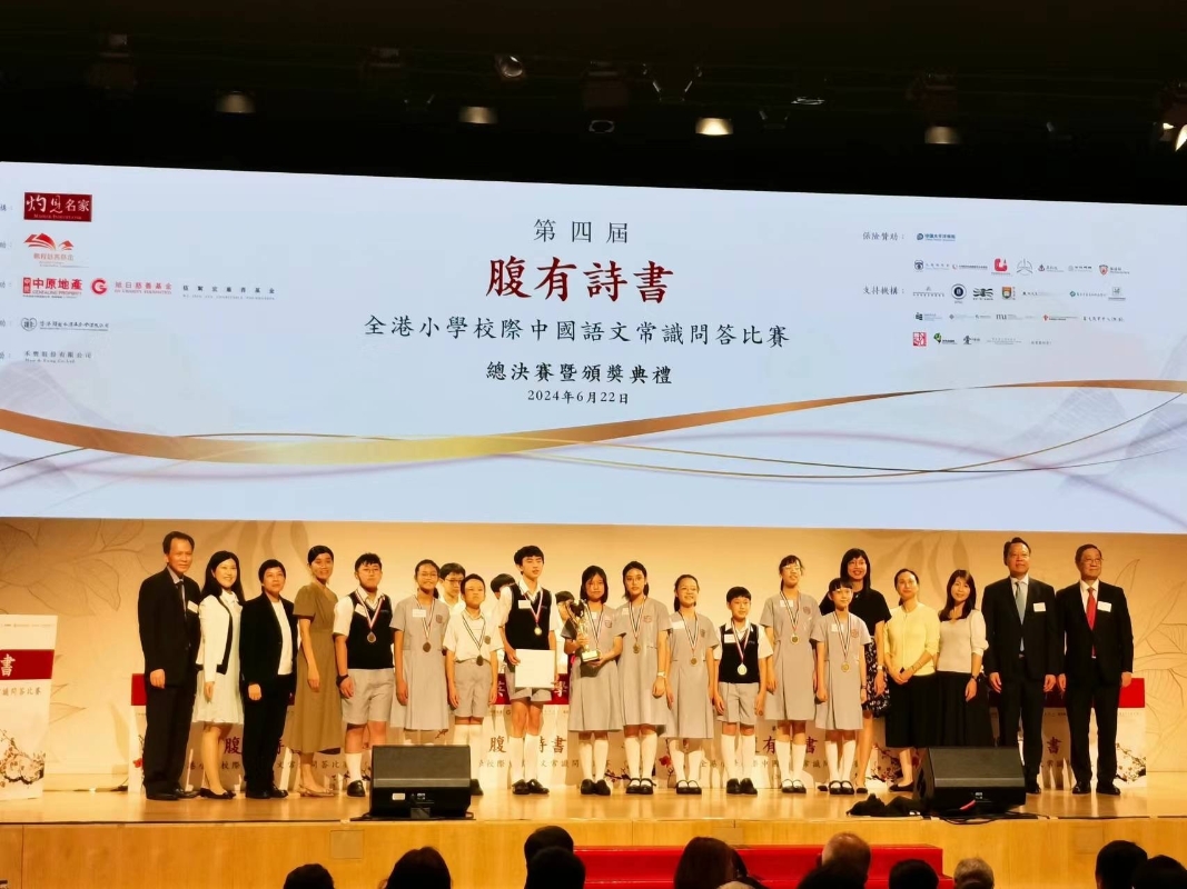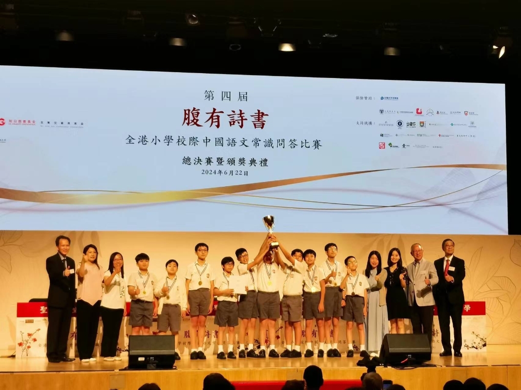 香港新聞網6月22日電 由灼見名家主辦的第四屆腹有詩書——全港小學校際中國語文常識問答比賽總決賽,22日在香港理工大學賽馬會綜藝館舉行。全港小學共84間報名參賽,聖公會聖彼得小學、英華小學、拔萃女小學及聖公會奉基千禧小學展開總決賽對決,最終英華小學以530高分奪得冠軍。