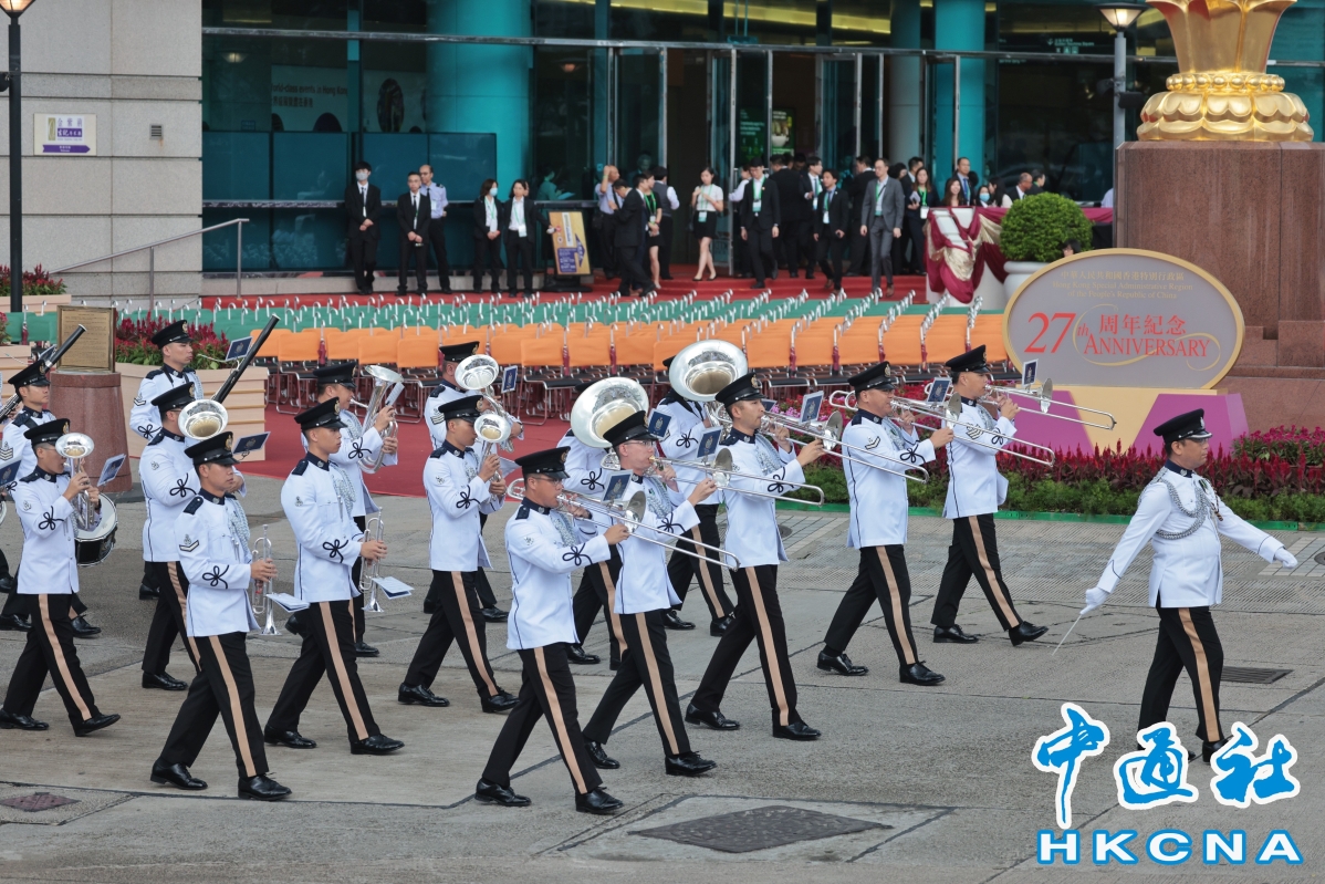 香港新聞網7月1日電(記者 張明臻)香港特區政府7月1日早上在灣仔金紫荊廣場隆重舉行升旗儀式,慶祝香港回歸祖國27周年。