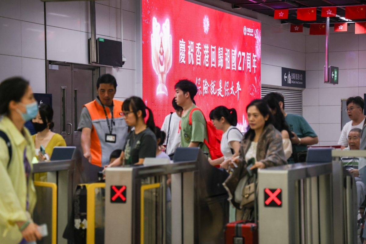 香港新聞網7月1日電(記者 曹文毓)7月1日,旅客在香港西九龍高鐵站入境。中國財政部28日宣佈,自港澳入境內地居民旅客免稅額提高至12000元人民幣,同時保留在進境口岸免稅店額外購買人民幣3000元免稅商品政策,額度合計人民幣15000元。新措施在7月1日起適用於羅湖、福田(落馬洲支線)、深圳灣、廣深港高鐵西九龍站、港珠澳大橋珠海公路等6個陸路口岸,并將於8月1日在所有口岸實施。