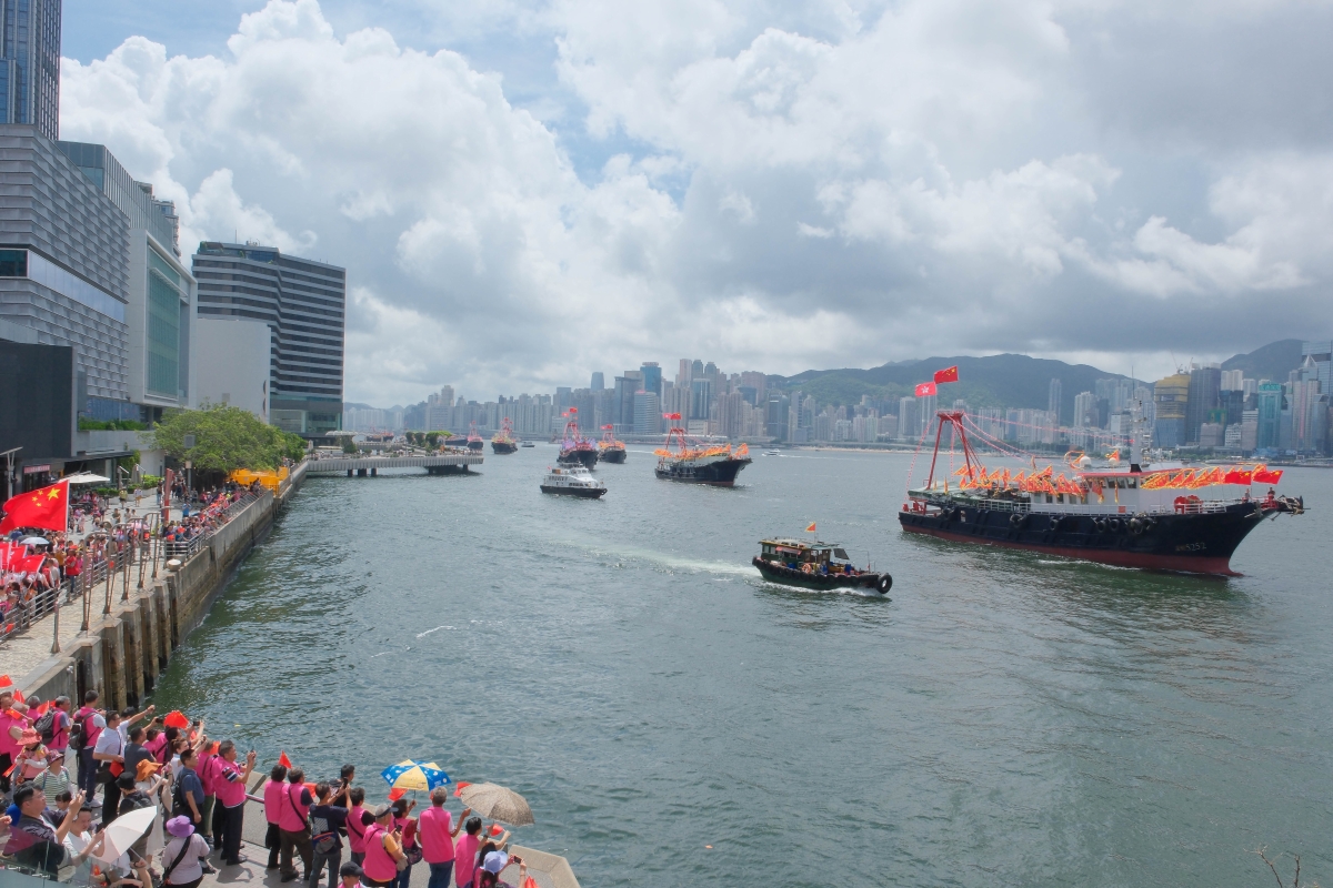 香港漁民團體聯會組織27艘大漁船在維多利亞港巡遊,慶祝香港回歸祖國27周年