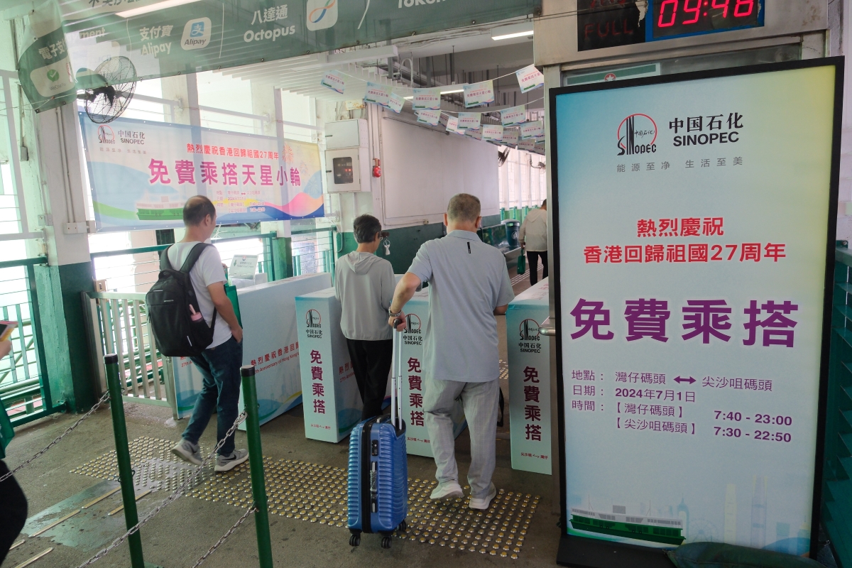香港市民可免費乘搭天星小輪來往尖沙咀和灣仔,慶祝香港回歸祖國27周年