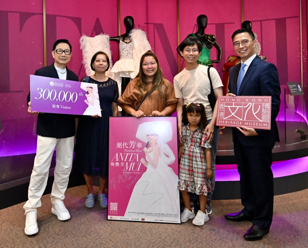 香港新聞網7月6日電 為紀念一代巨星梅艷芳逝世20周年,香港文化博物館舉辦“絕代芳華・梅艷芳”展覽,自去年12月底開展以來,已錄得超過30萬人次參觀,深受市民及旅客歡迎。 特區政府文化體育及旅遊局局長楊潤雄和梅艷芳生前好友、殿堂級時裝及形象設計師劉培基5日親臨博物館,向展覽第30萬名參觀者送上別具心意的禮品包,包括由劉培基親筆簽名的展覽海報及其設計的紀念品、展覽明信片、“瞧潮香港60+”展覽紀念品,以及兩張《三俠四義》音樂會門票。