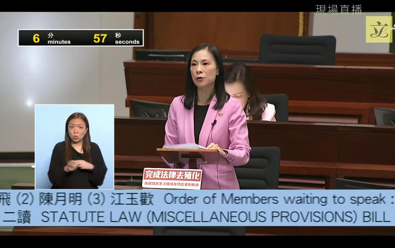 欣賞並支持不含法律去殖化的相關法律修改 1. 《刑事訴訟程序條例》第221章清楚寫出所有刑事法例當中所指明的定額罰款均屬非規定罰款(即不是分級數的罰款),令刑事罪行的“非規定罰款”的釋義及涵蓋範圍更清晰及易於理解。 2. 《私營醫療機構條例》第633章中有關“代決人”的釋義,更好保障病人投訴私營醫療機構的合法權益,彰顯相關條文的政策原意。 促請政府持續識別及盡快全面完成本地法律去殖民化 香港回歸27年,本地法律“去殖民化”終於迎來二讀辯論及三讀香港成文法作系統性法律適應化修改,本人深感激動。本人自2015年與香港中律協及眾多社會人士一直努力爭取本地法律去殖民化。本人作為香港土生土長及接受法律教育培訓的律師,經歷了殖民年代、香港回歸祖國,到現在愛國者治港、香港由治及興的時代,為有幸參與修訂香港本地法律,正確反映中華人民共和國政府於1997年7月1日恢復對香港行使主權及香港憲制和法治秩序,感到光榮。 1. 條例草案使香港成文法更清晰、精簡及易用,將要修訂法例和附屬法例賦予享有的權利、要保障及效忠的主體正名為中央和香港特區政府,大大有助公眾查閱和理解本地法律的合憲性,並捍衛憲法和基本法的權威。 2. 促請政府持續識別及盡快全面完成本地法律去殖民化 同意政府以綜合條例草案的方式,向立法會提交條例草案,並以先易後難的方式,繼續推動完成法律去殖民化修改工作。成文法進行系統性檢討工作進行至今,識別了共101項條例或附屬法例需要法律去殖民化的修改,令其符合《基本法》及切合香港作為中華人民共和國的特別行政區的地位,但以上只是本地法律去殖民化立法過程的開端。仍有約23項條例或附屬法例去殖民化修改比較複雜,有待解決。本人促請政府持續識別及盡快全面完成本地法律去殖民化。 3. 支持律政司在修正案回應並採納本人意見,保留《釋義及通則條例》附表8第21條作為兜底條款 審議條例草案階段時本人及法案委員會成員指出需要但未進行法律適應化的法例的例子,例如就“官方”二字題述的討論,証明香港成文法去殖化仍有大量的法律修改工作。故現階段保留《釋義及通則條例》附表8第21條是合適的,標明法律釋義不可影響中華人民共和國中央人民政府及香港特別行政區政府的根據基本法和其他法律的規定所享的權利,具法律兜底作用,在法律去殖民化未全部完成時,確保有關條例和附屬法例符合基本法第二條和第十二條,彰顯國家實行單一制原則,由中央統一領導,香港特別行政區的一切權力來自中央,香港不是獨立政治實體,只是地方單位,以中央授權為限。本人對此表示支持、肯定和認同。(完) 【編輯:張明臻】