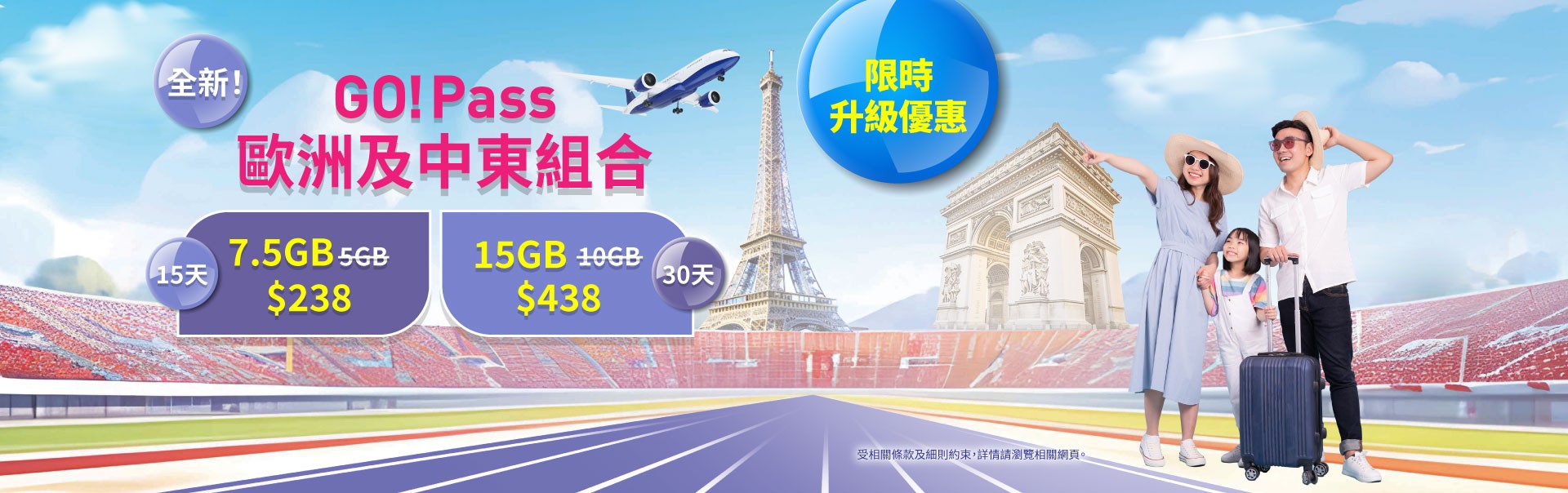 限時優惠 數據提升50% 價格不變 四年一度的體壇盛事即將舉行,由即日起至2024年8月12日,指定“GO! Pass歐洲及中東”進行限時優惠,$238/15日/5GB提升至7.5GB;$438/30日/10GB提升至15GB,數據用量提升,價格不變!(完) 【編輯:譚暢】