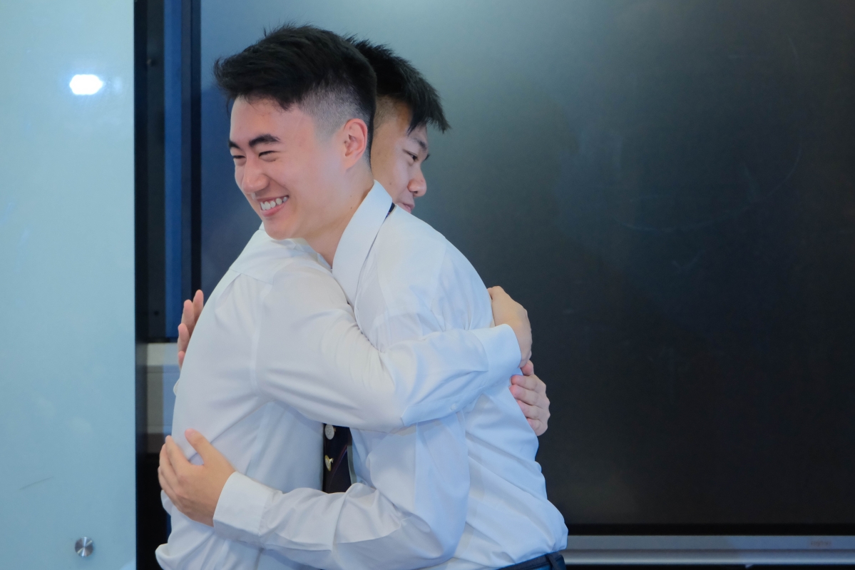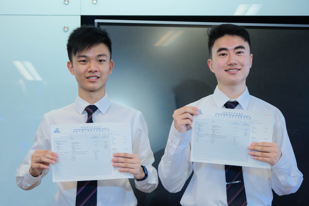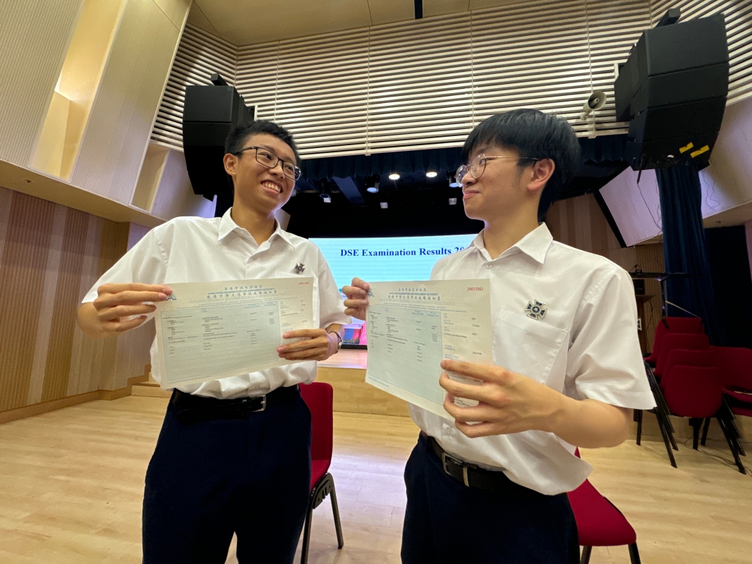 喇沙書院的“超級狀元”鐘栢綸(左)和“狀元”陳澤鋒