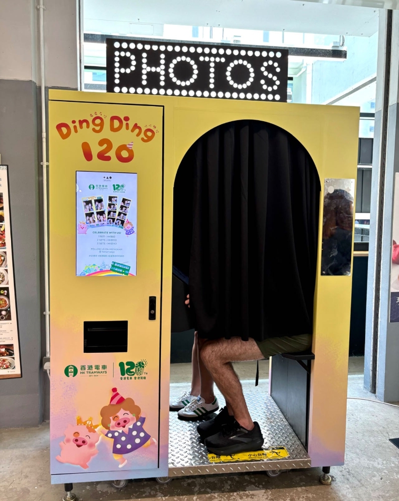 “香港電車 x Snapio自拍亭”,配有期間限定的麥兜家庭相框。(香港中通社記者 黃璇攝)