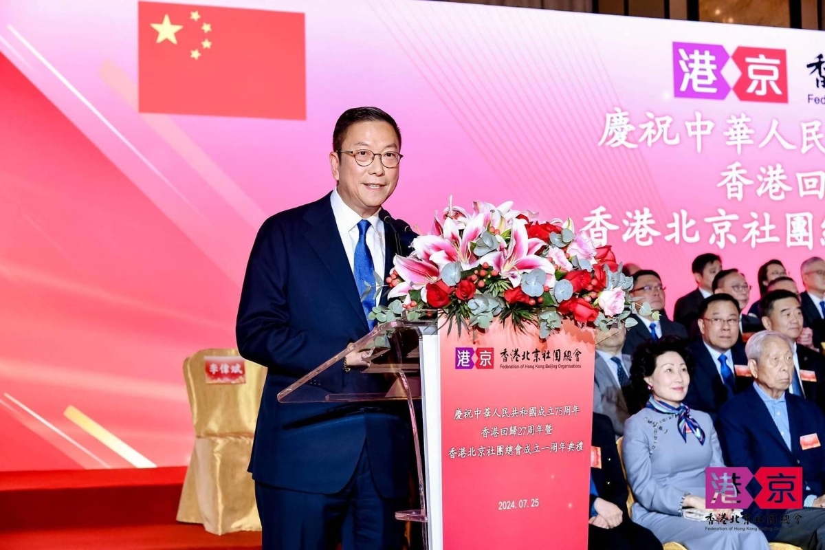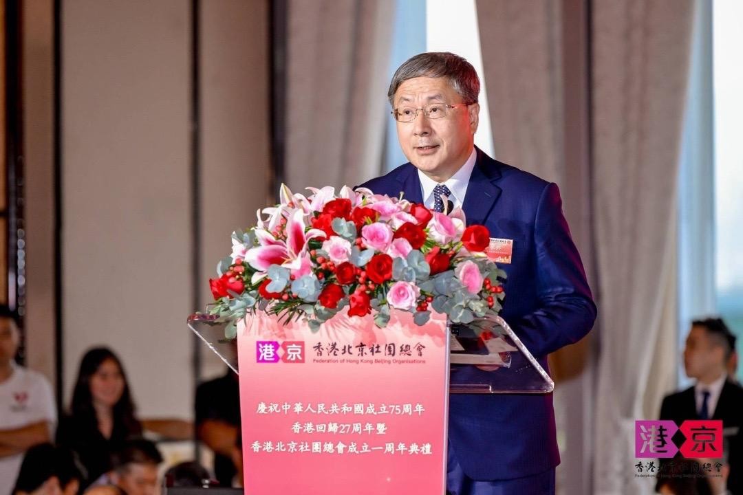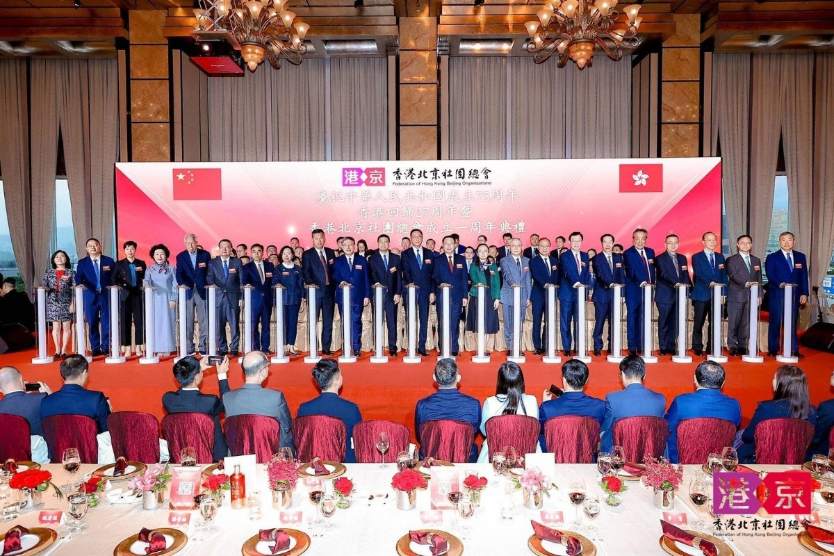 香港北京社團總會慶成立一周年香港新聞網7月25日電 香港北京社團總會25日隆重舉行“慶祝中華人民共和國成立75周年、香港回歸27周年暨香港北京社團總會成立1周年典禮”。 北京海外聯誼會會長楊晉柏,中央政府駐港聯絡辦公室副主任何靖,香港特別行政區政府政務司副司長卓永興,北京海外聯誼會副會長黃克瀛,外交部駐港特派員公署副特派員李永勝,駐港國家安全公署局長鄧建偉,香港特別行政區政府政制及內地事務局局長曾國衛,香港特別行政區政府民政及青年事務局局長麥美娟,中央政府駐港聯絡辦公室社團聯絡部部長鐘吉昌等應邀擔任主禮嘉賓;多名中央駐港機構代表、特區政府官員、港區全國人大代表、全國政協委員、立法會議員及各友好社團首長等各界來賓蒞臨典禮。