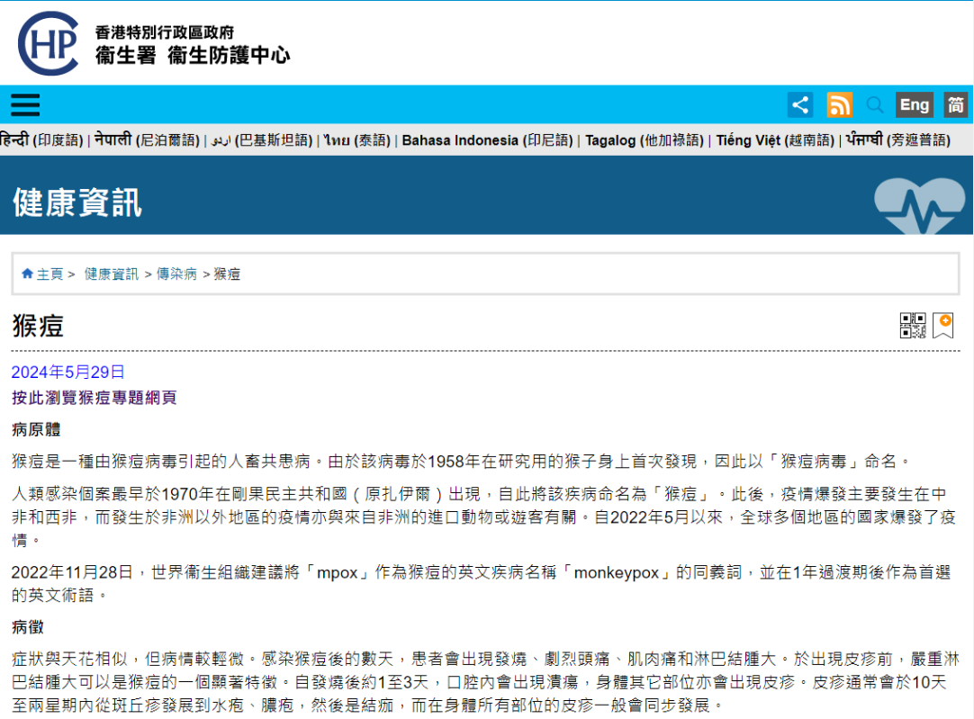 兩名病人現時情況穩定,並已入住瑪嘉烈醫院。中心暫未發現兩宗新增個案有流行病學關連,亦未有發現他們與本港早前錄得的其他猴痘確診個案有流行病學關連。中心正繼續就個案進行流行病學調查,並會將個案通報世界衞生組織和泰國衞生當局。 中心再次呼籲高風險目標群組人士接種猴痘疫苗,以減低感染機會或感染後出現較嚴重病徵的機會,並建議出現猴痘症狀(包括皮疹、發燒、發冷、淋巴結腫大、疲乏、肌肉痛及劇烈頭痛等)或懷疑自己受感染的人士應立即求醫並接受治療,不應與其他人士進行可能接觸到皮疹或體液的活動。市民亦應時刻保持良好個人及手部衞生,預防經接觸傳播或感染病毒,並避免與懷疑感染猴痘的人或動物作密切身體接觸。 中心早前已設立猴痘電話熱線(2125 2373),逢星期一至五(公眾假期除外)上午9時至下午5時運作,以便懷疑或憂慮曾與確診病人有高風險接觸的人士,尤其是男男性接觸者或曾與陌生人發生性行為,致電查詢及獲取相關的健康建議。(完) 【編輯:譚暢】
