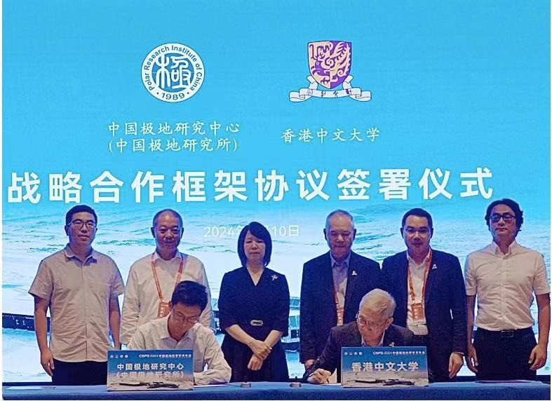 香港新聞網8月11日電 香港中文大學與中國極地研究中心於2024年8月10日在“2024中國極地科學學術年會”期間簽署了戰略合作框架協議。 中大副校長(策略發展)陳偉儀教授和極地中心副主任張北辰代表兩所學術機構簽署合作框架協議,由國家海洋局極地考察辦公室主任沈君、極地中心主任劉順林、自然資源部國際合作司二級調研員李洋洋及科技發展司四級調研員李敏、中大深圳研究院院長任揚教授、執行院長林煌權博士見證。雙方將憑藉各自優勢,攜手建立香港極地科學創新中心,創建香港聯通內地、連接世界的極地科技創新平台;並支持相關研究領域的香港科研人員參與極地觀測、前沿科學研究和創新技術開發。